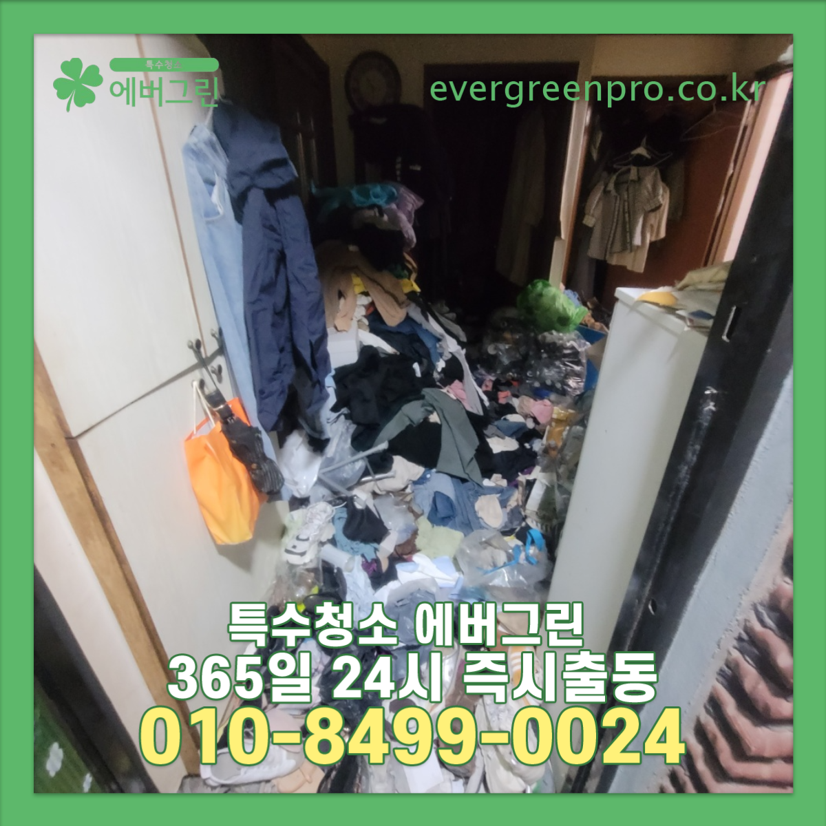 일산 쓰레기집청소비용 소독업체 특수청소 에버그린입니다.